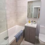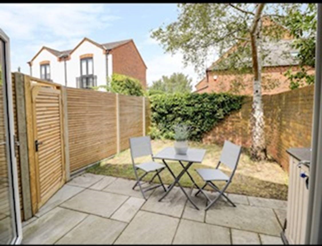 To the rear of the property there are large patio doors leading to a private patio area with garden furniture and a lawn. There is also a small bathroom underneath the stairs containing a W.C and sink – upstairs there is a larger full bathroom suite as well as an en-suite in one of the bedrooms.