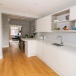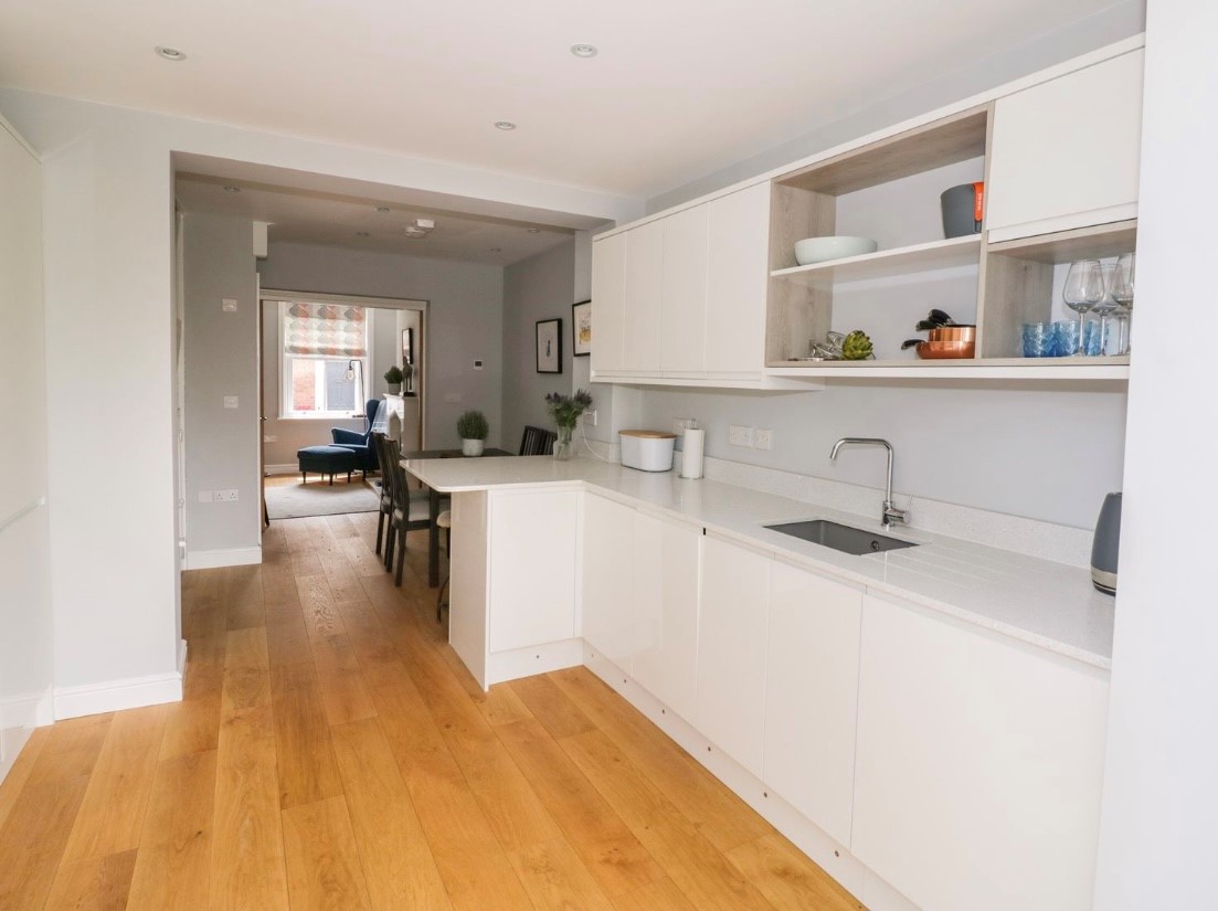The property was rebuilt from scratch in 2018 and has a lovely modern look and feel throughout. The front door leading to the sitting area complete with gas fire, further into the property there is a dining area, breakfast bar and a stunning kitchen. The kitchen comprises a washer dryer and dishwasher with an electric oven and induction hob amongst other smaller appliances.