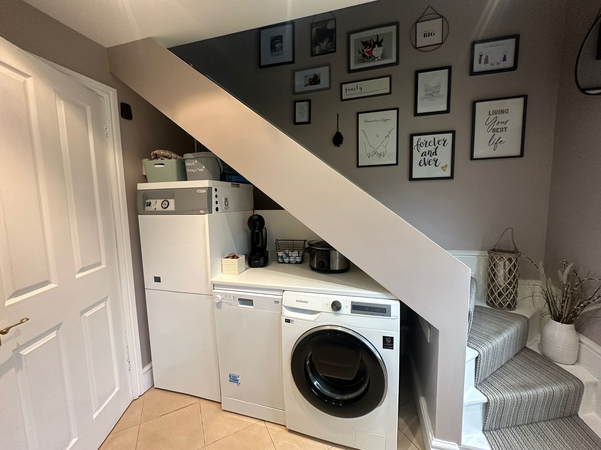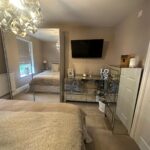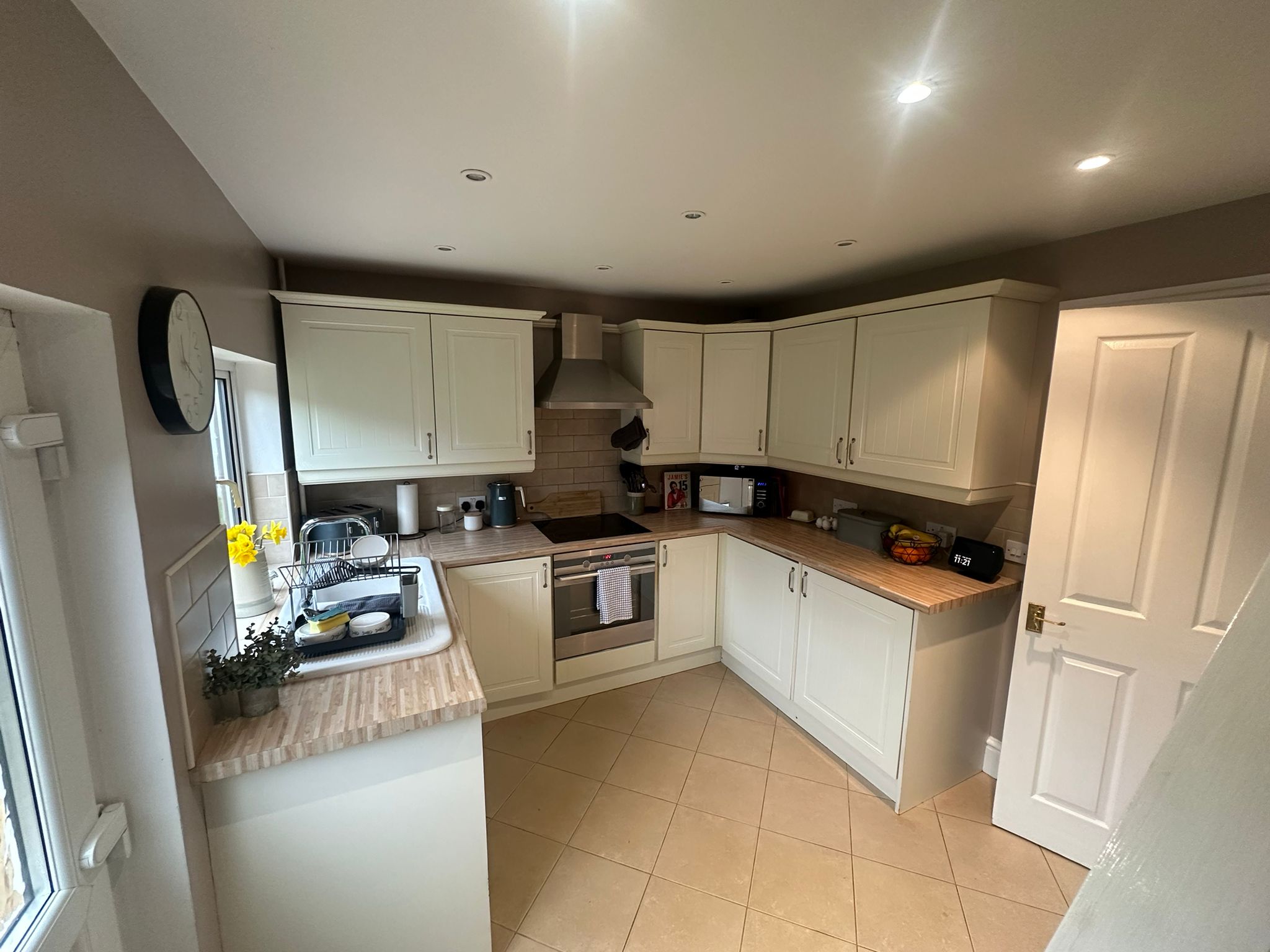 The contemporary kitchen has been recently refitted to a high standard, complete with integrated appliances and sophisticated tiled flooring, offering both practicality and refined style.