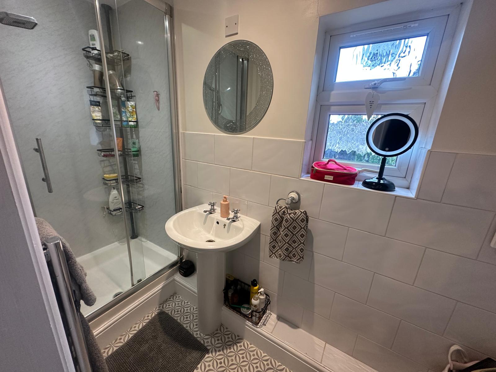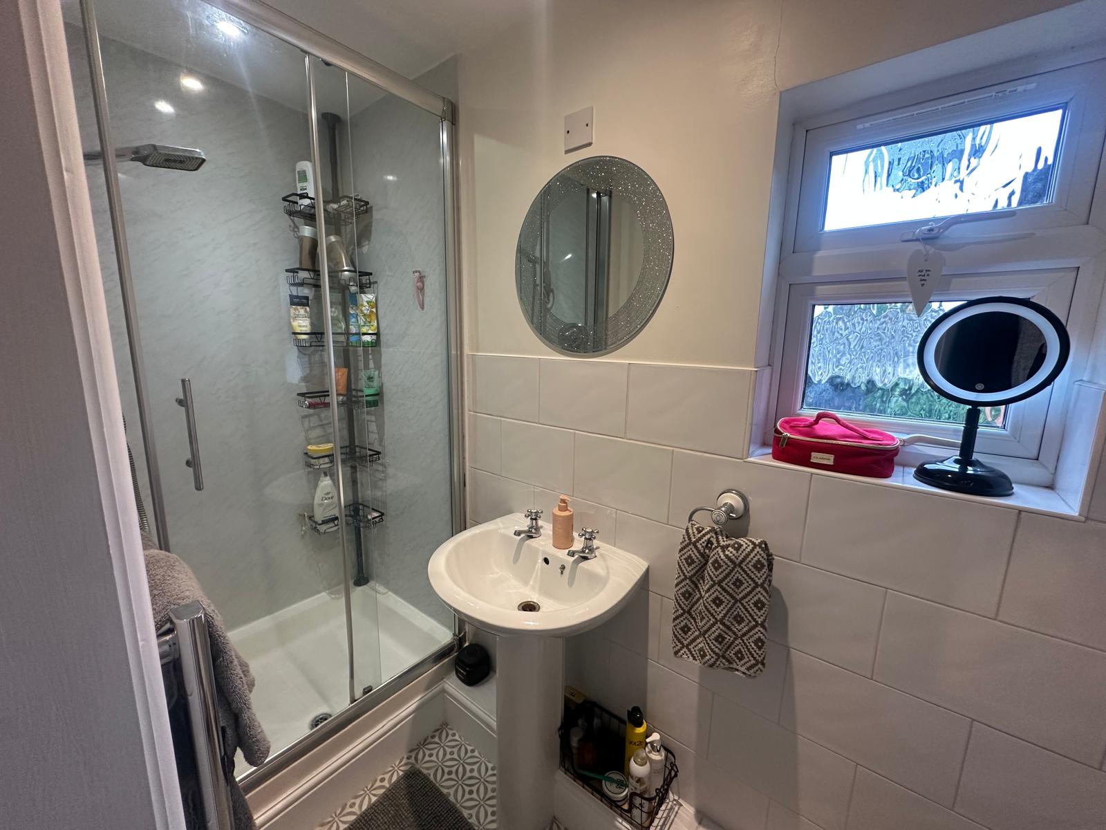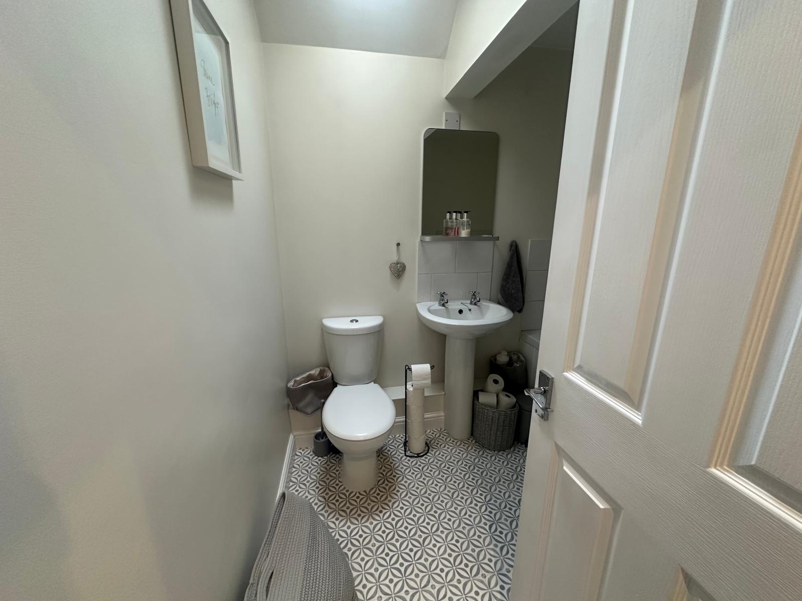 To the first floor, the property boasts two generous double bedrooms, with the principal bedroom benefiting from a sleek ensuite shower room. A well-proportioned third bedroom provides versatile space for a child's room, home office, or guest accommodation. A beautifully appointed family bathroom completes the upper floor.