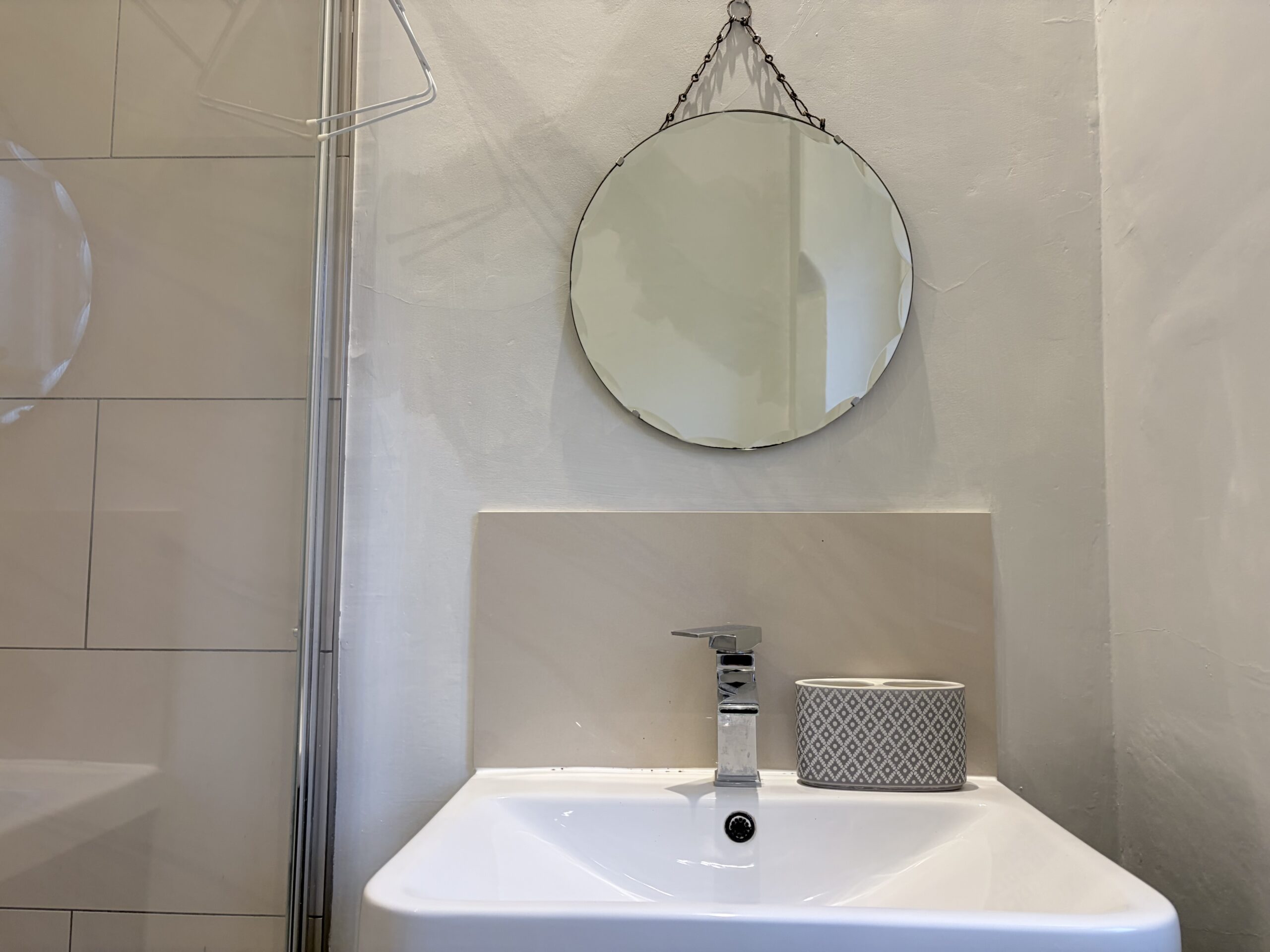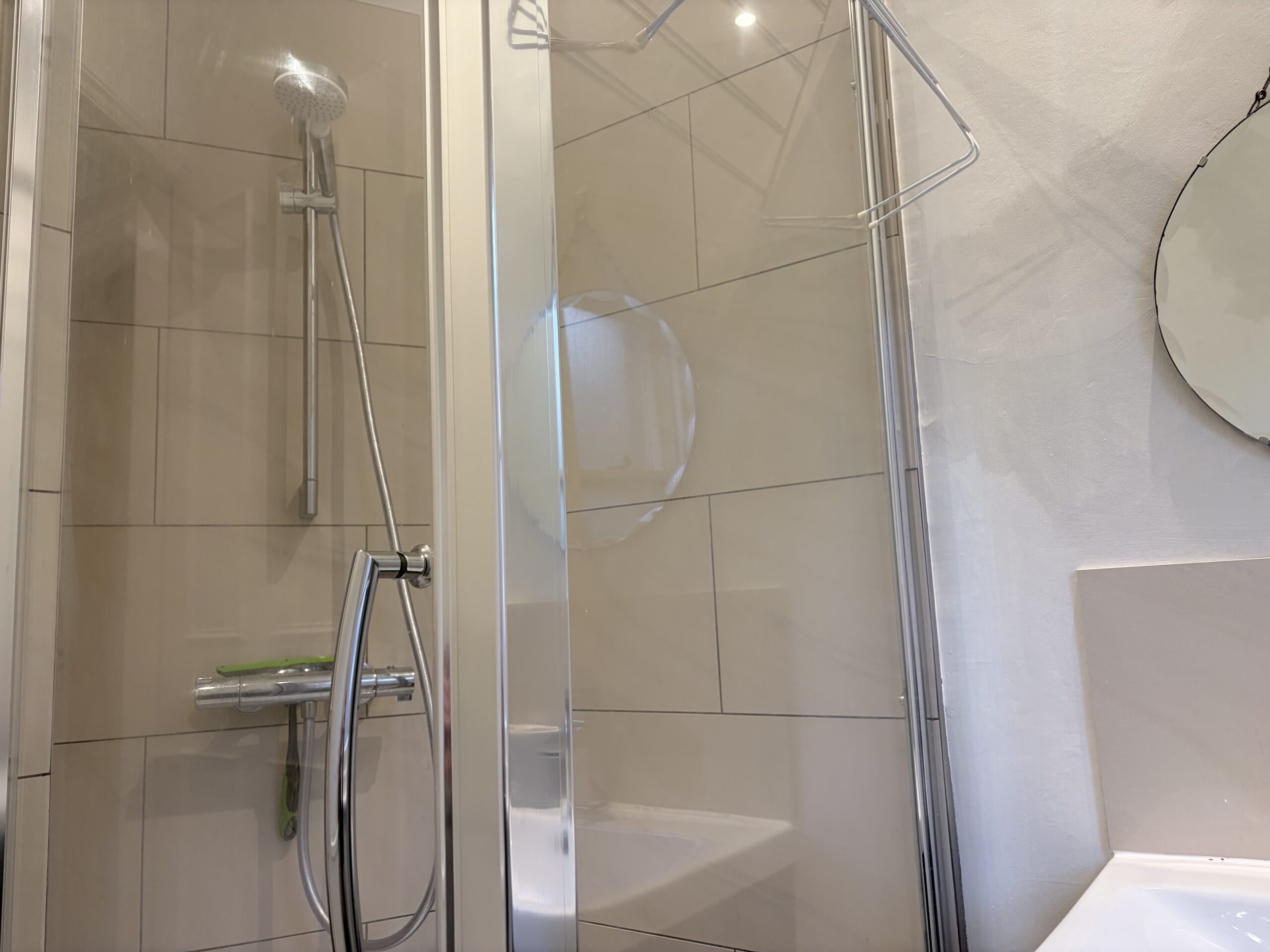 * Stylish bathroom - fully tiled and fitted with a large walk-in shower, designed for comfort and ease.