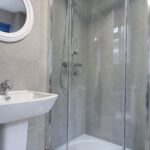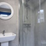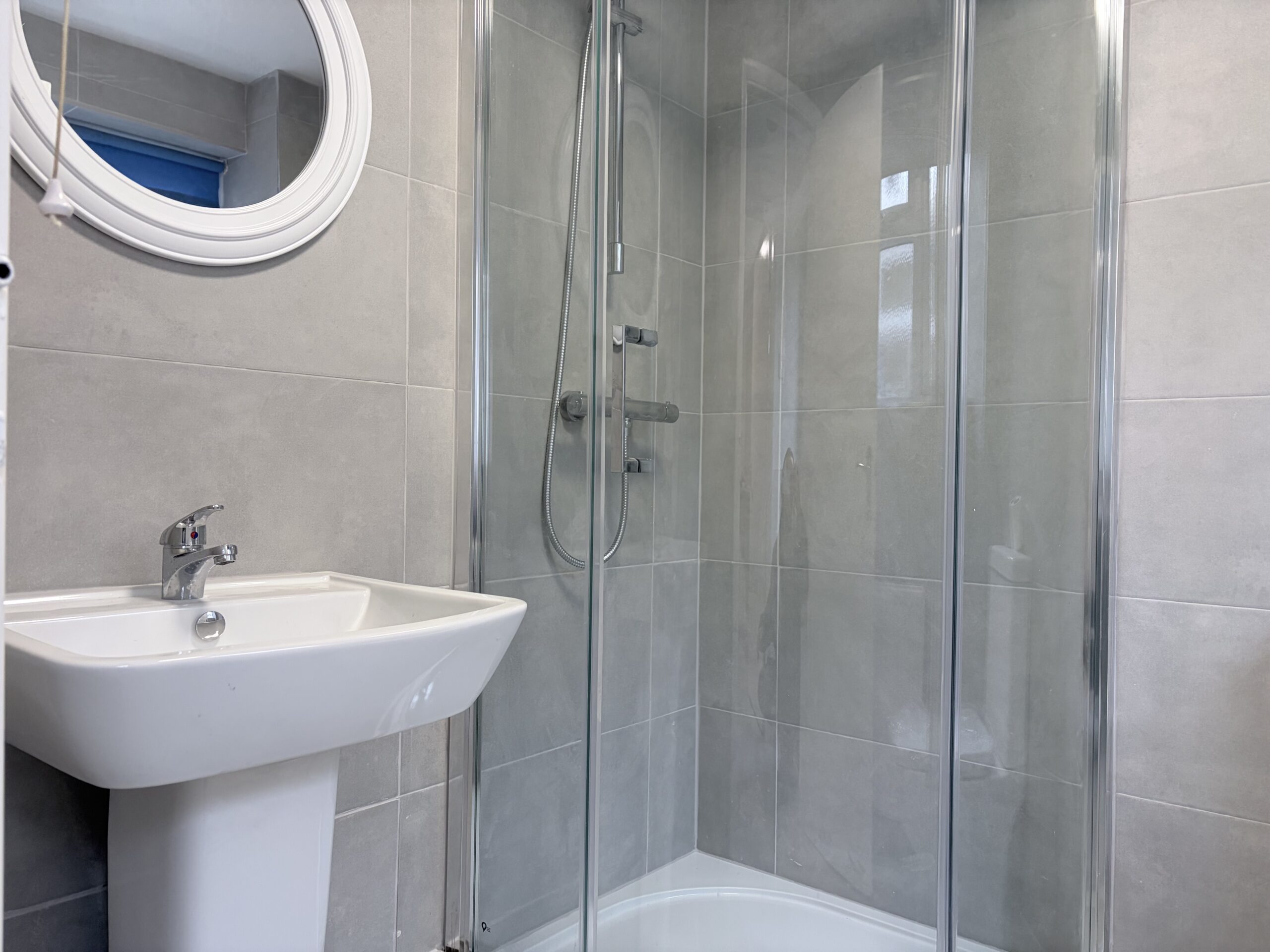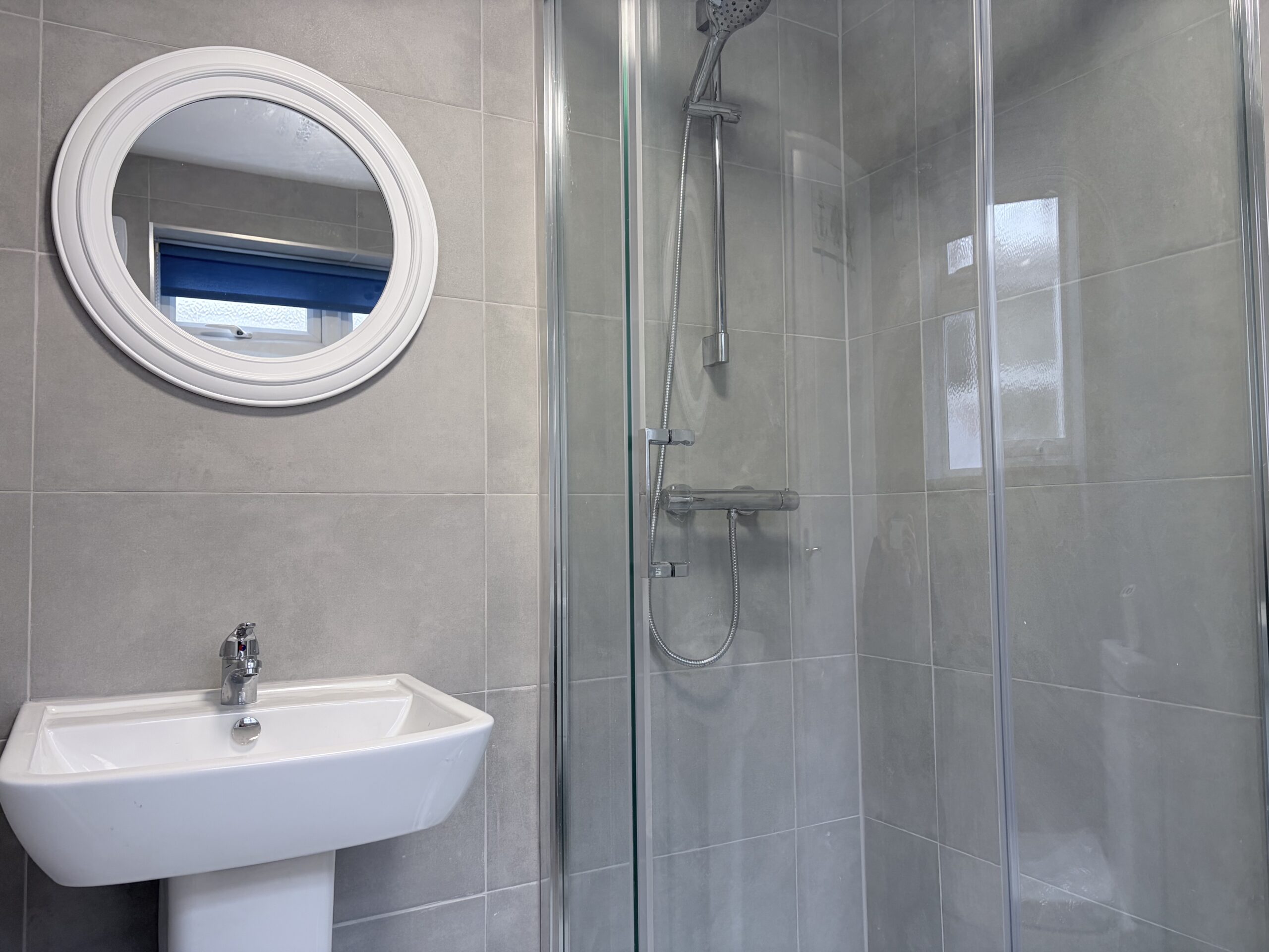 The bathroom is located on the ground floor and offers modern suite with electric shower over bath.