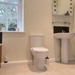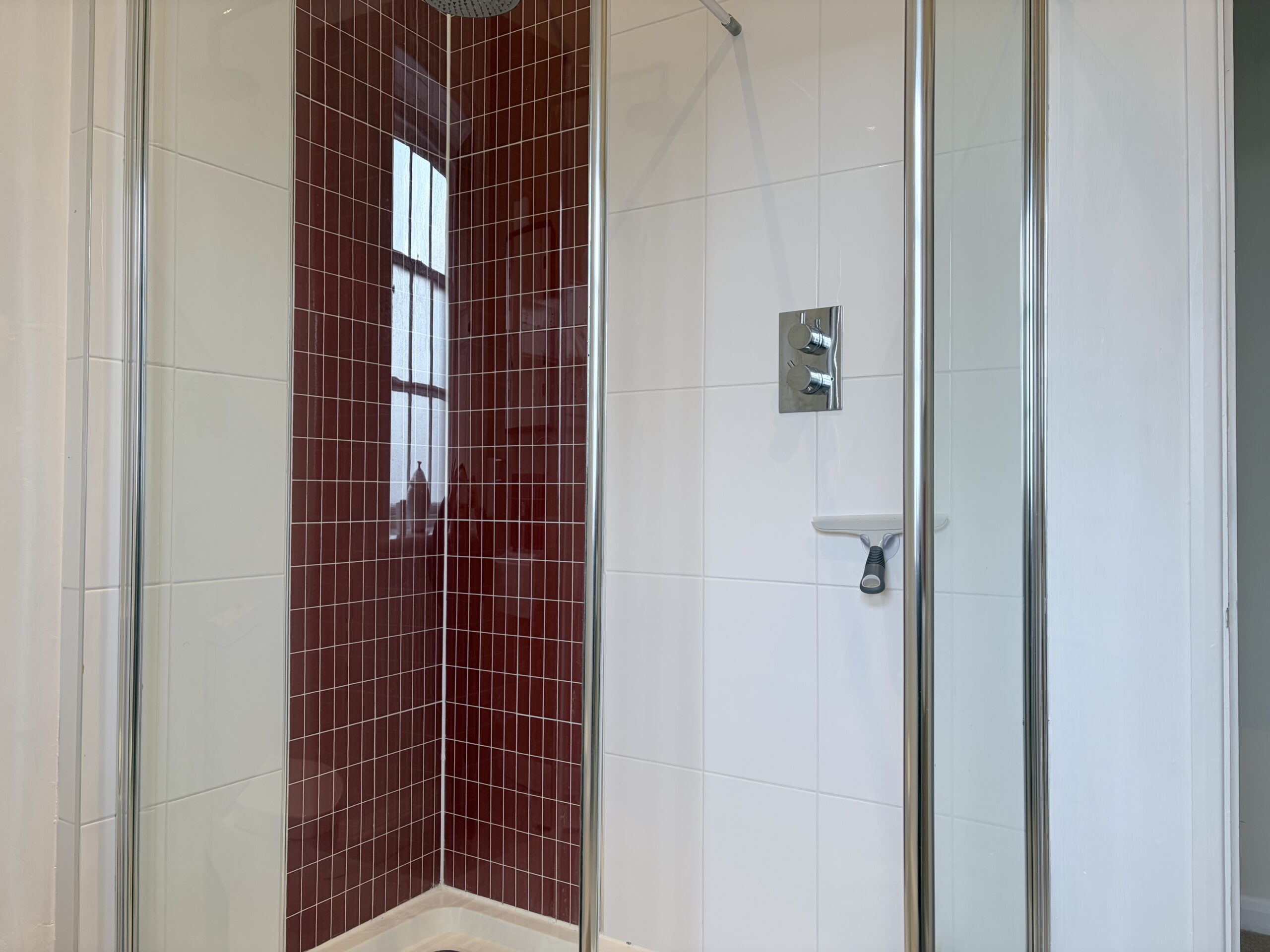 The master bedroom boasts a private ensuite shower room and a walk-in wardrobe, with additional built-in storage throughout the home. Two further bedrooms are well-proportioned and served by a contemporary family bathroom, complete with a separate shower cubicle.