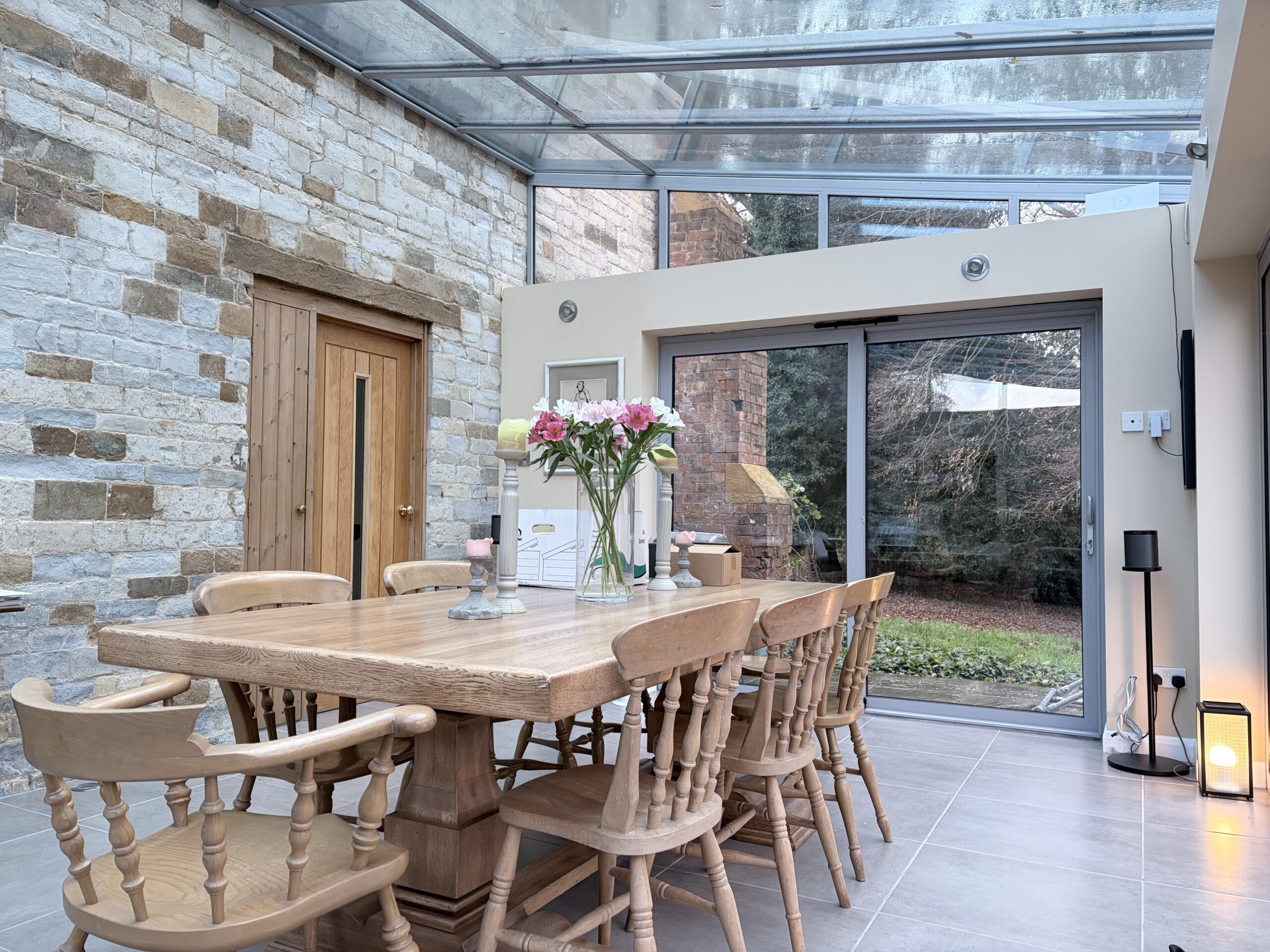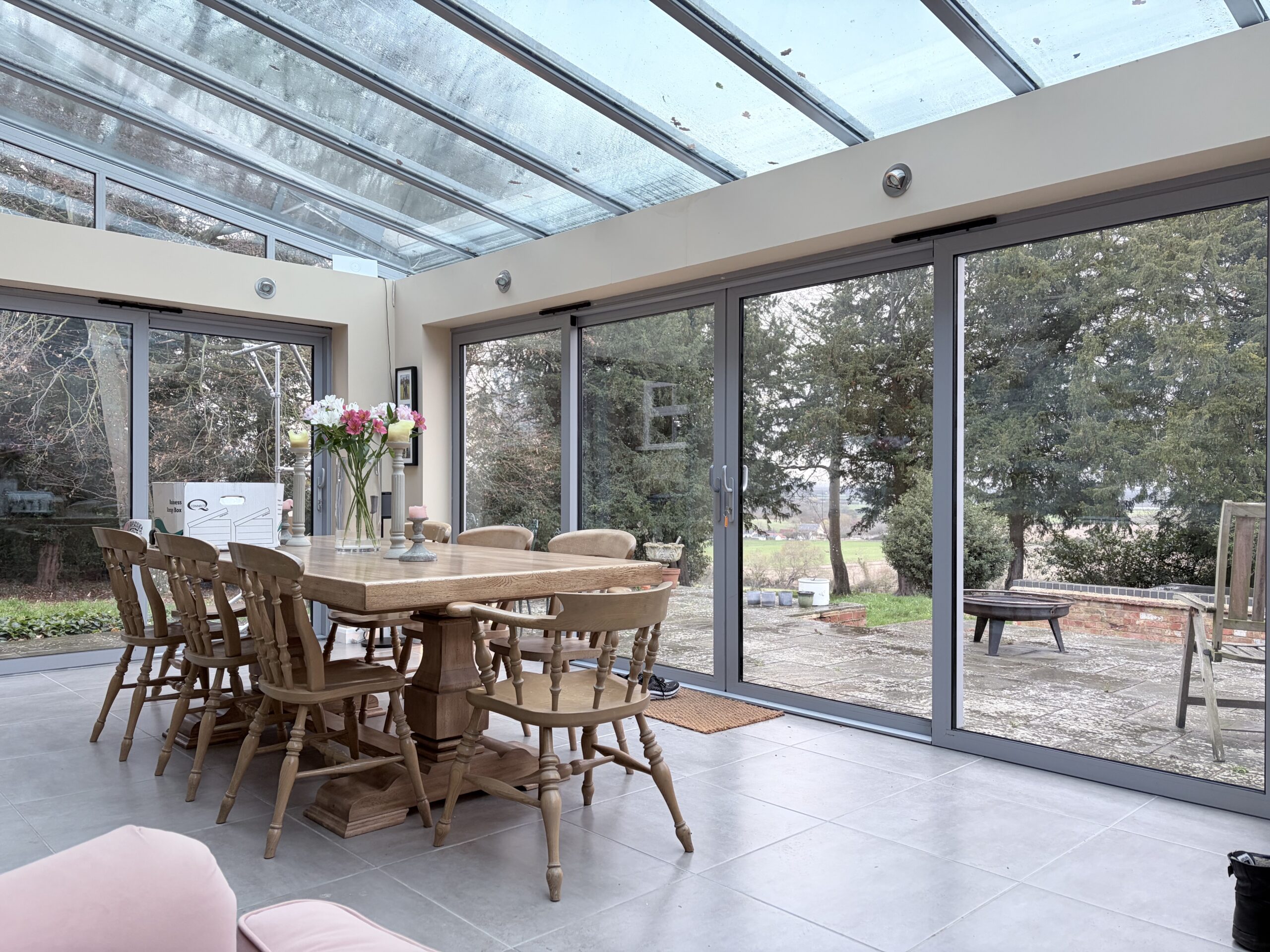 The property features a light-filled conservatory, perfect for relaxing and enjoying the scenery year-round. The generous lounge and stylish kitchen with modern appliances create an inviting living space ideal for both quiet evenings and entertaining.